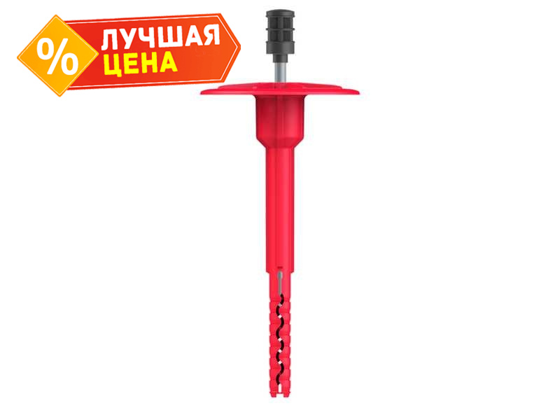 Предназначен для крепления теплоизоляционных плит к несущему основанию в фасадных системах наружного утепления с воздушным зазором. Наилучшим образом подходит для крепления теплоизоляционных плит низкой плотности. Специальные ребра дают возможность ограничения глубины монтажа, предотвращают деформацию теплоизоляционных плит, что приводит к сохранению теплотехнической однородности по плоскости стены.